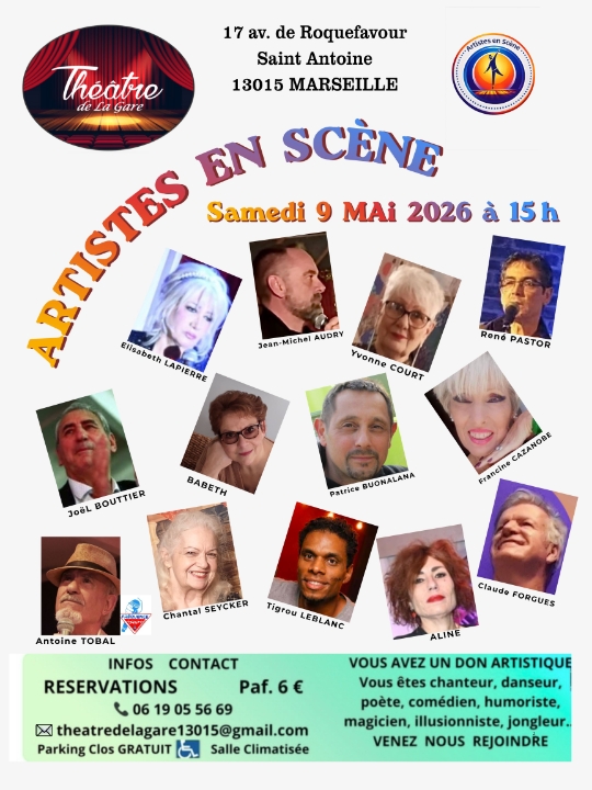 Réservations au: 06 19 05 56 69 ou par mail: theatredelagare13015@gmail.com